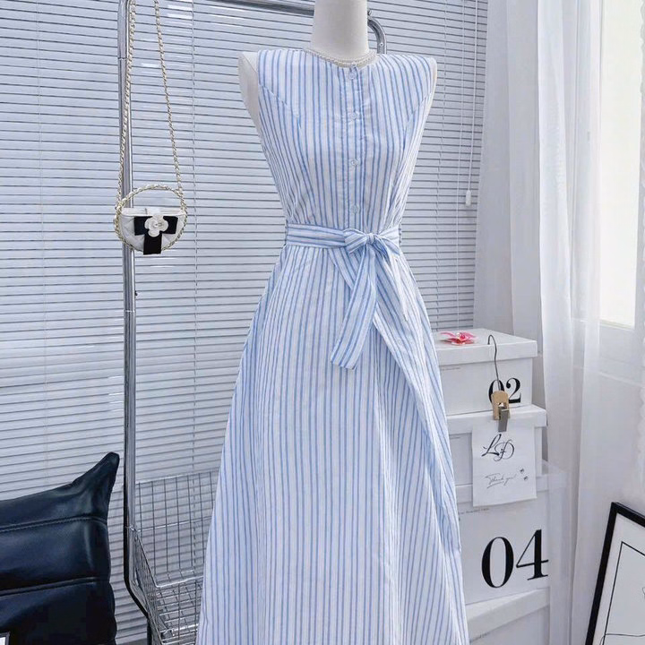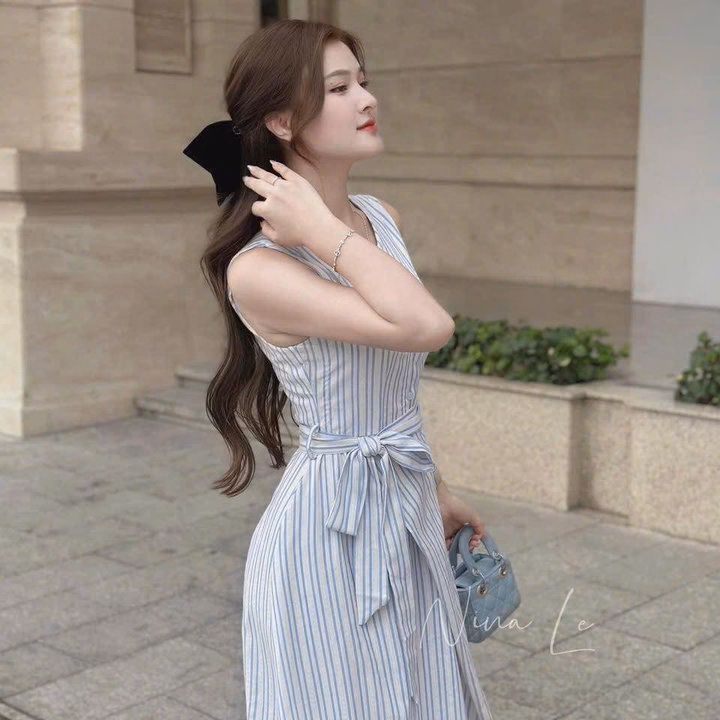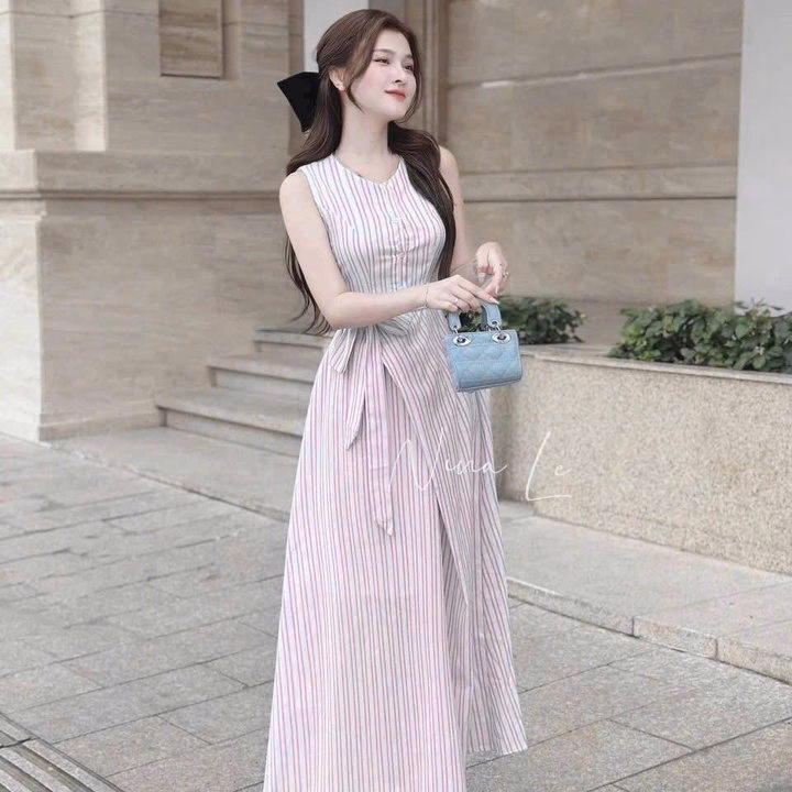 Đầm Váy Nữ Linen Sọc Cột Dây Eo St95T- Nana House