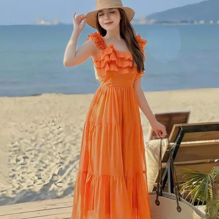 Đầm Váy Nữ Maxi Viền Xếp Bèo (Có Lót) Bh959R- Nana House