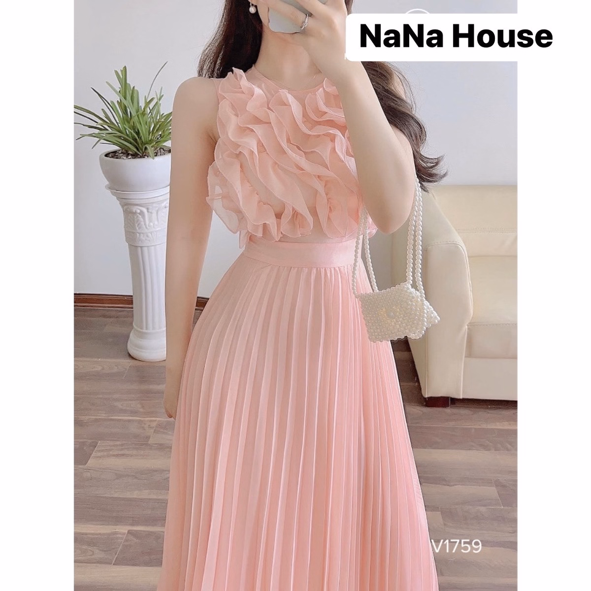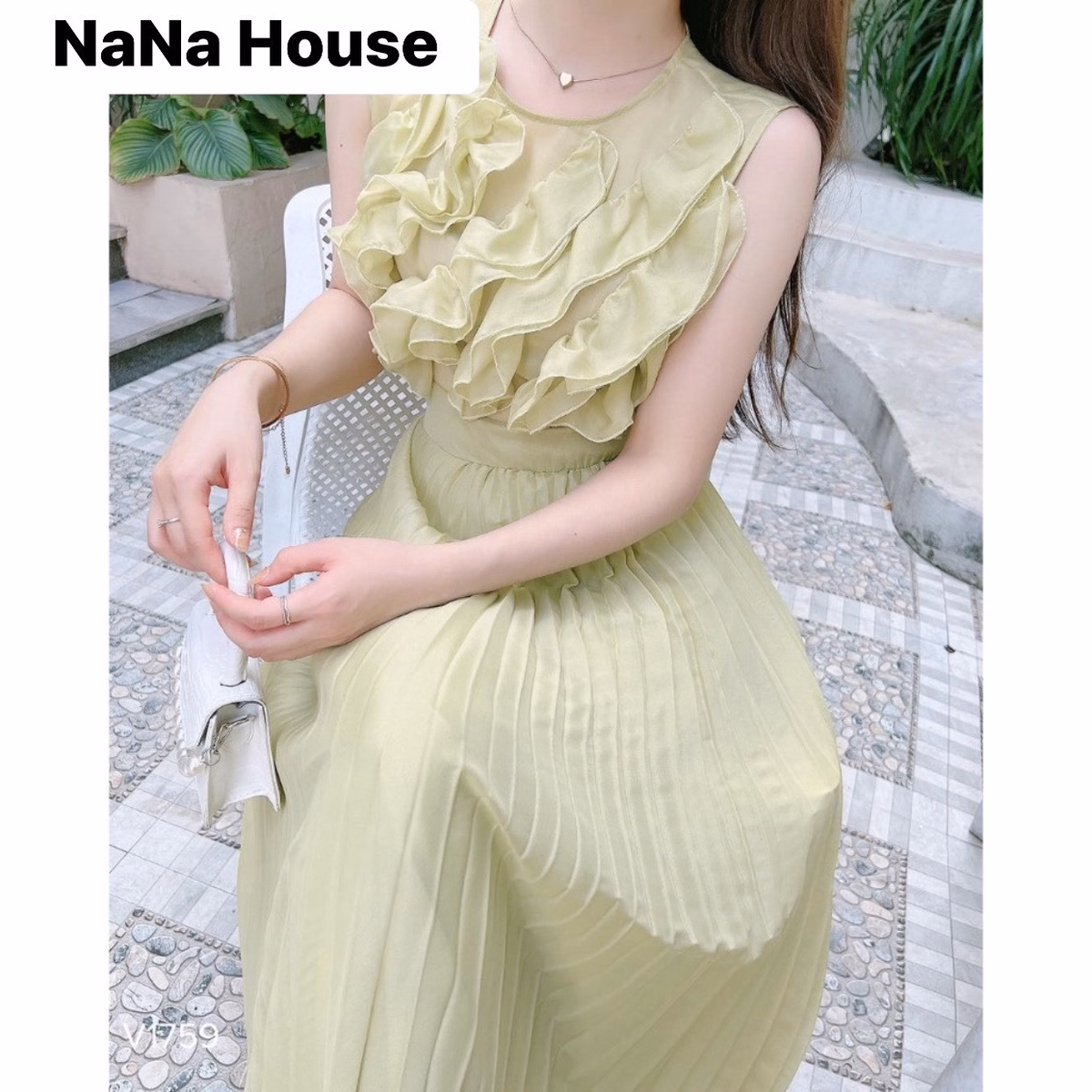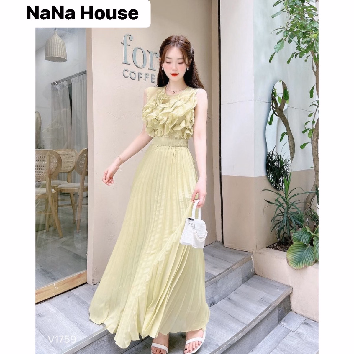 Đầm Váy Nữ Maxi Xòe Dập Ly Bèo Phối Voan Chinfon (Có Lót) Dd012 – Nana House