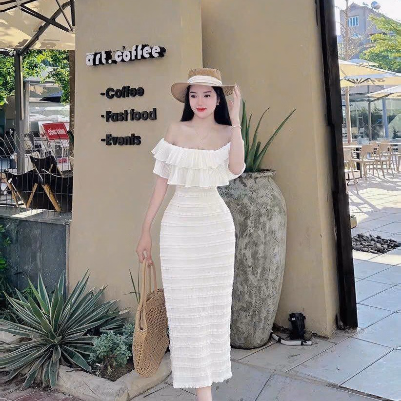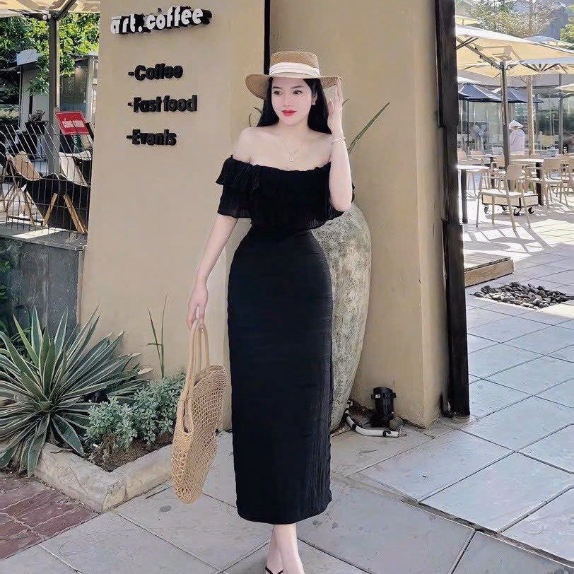 Đầm Váy Nữ Ren Len Dáng Dài Rớt Vai Viền Bèo Ngực Sa1130 – Sam Store