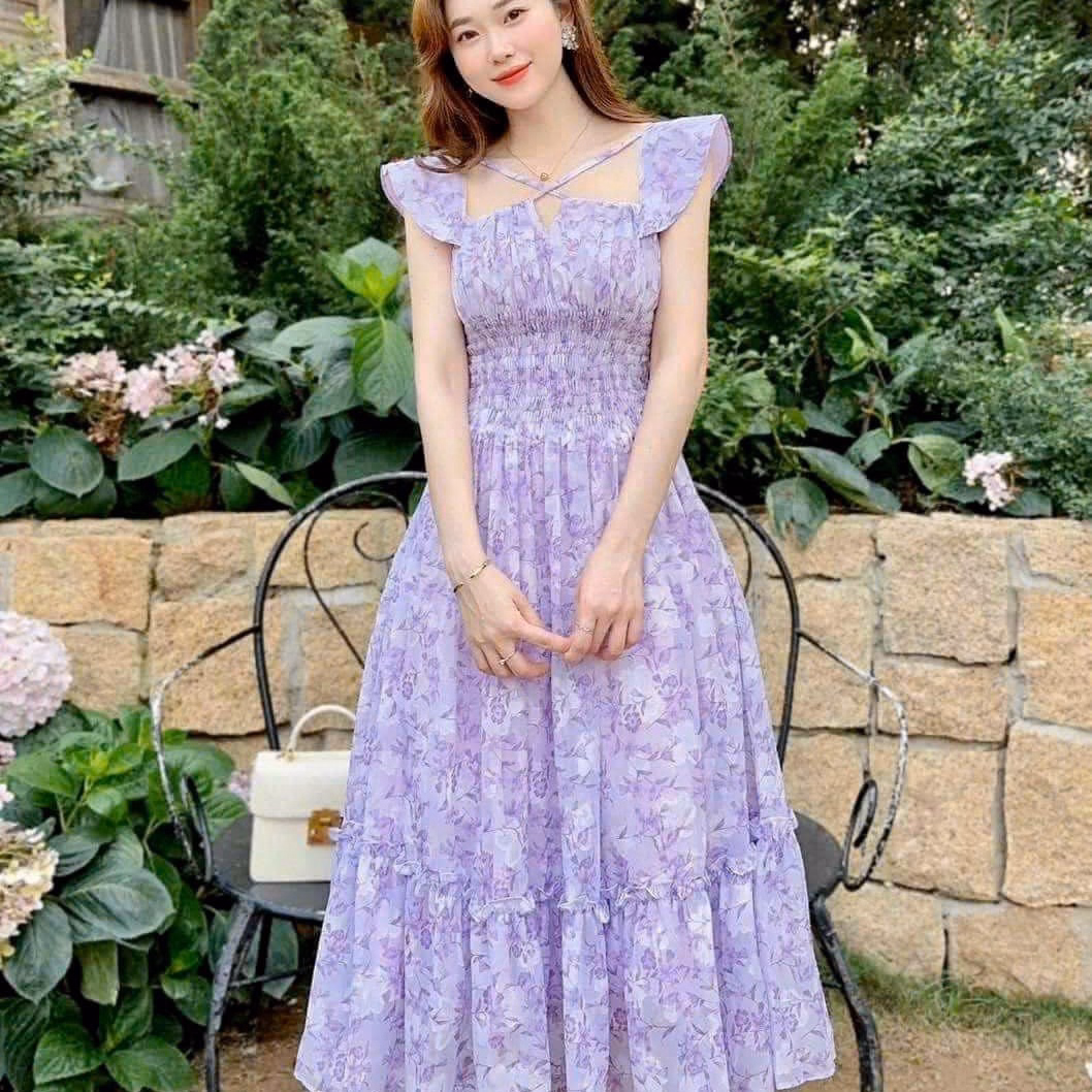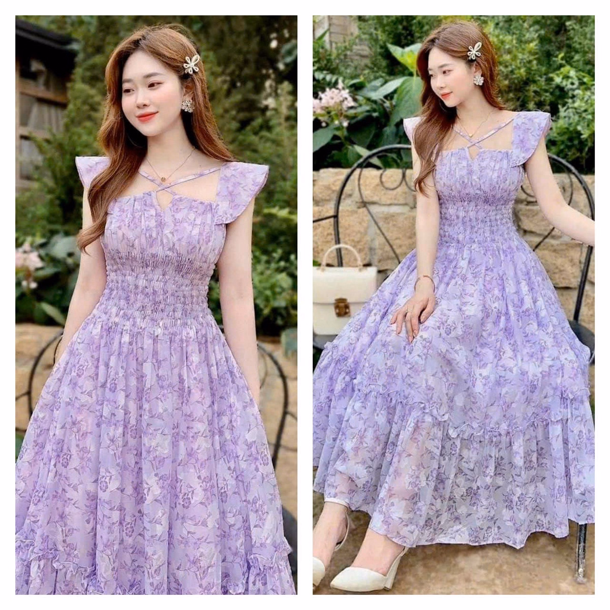 Đầm Váy Nữ Voan Hoa Xòe Mocking Eo Hoa Tím Dd021 – Nana House