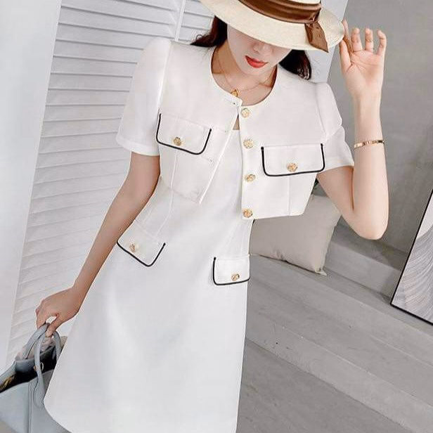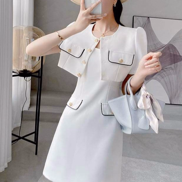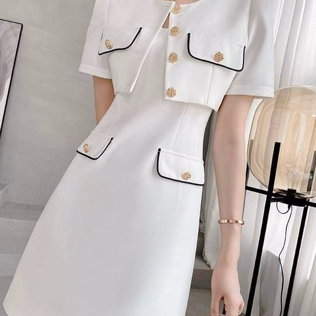 Đầm Viền Túi Kèm Áo Khác Cài Nút Thật T356 – Aine