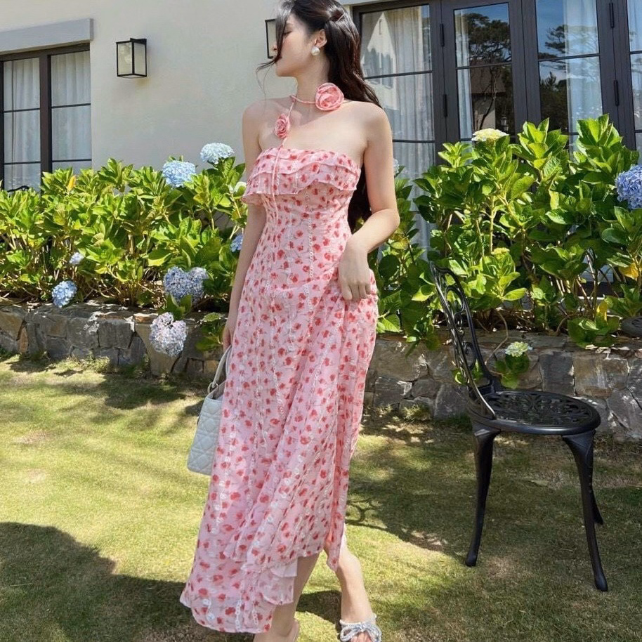 Đầm Voan Hoa Kèm Dây Có Đính Hoa V370 – Haka Mây