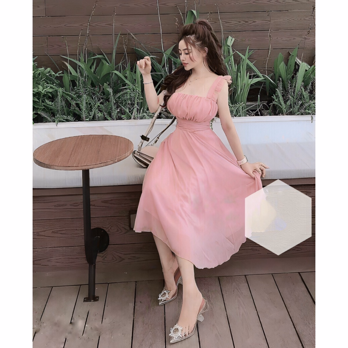 Tên sản phẩm: Đầm Voan Nhún Bèo Cao Cấp V07 – Haka Mây