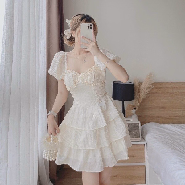 Tên sản phẩm: Đầm xòe 3 tầng chất thun đũi gân V190 – Cloudy Dress
