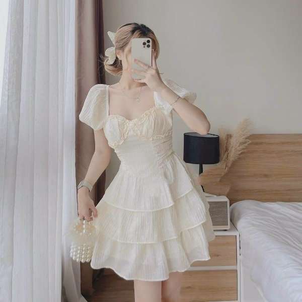 (Xả Hàng) Váy Babydoll Phối Cổ Tiểu Thư Phong Cách Hàn Quốc Cực Xinh