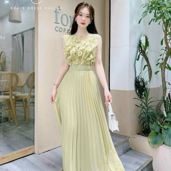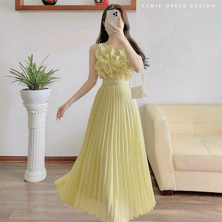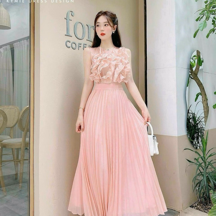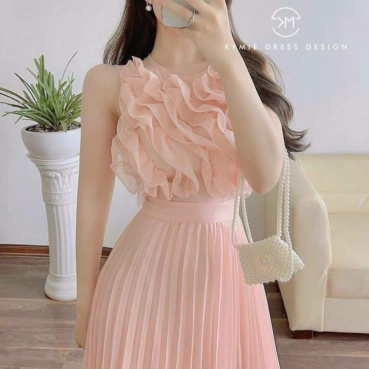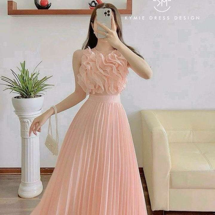 Đầm Xòe Dập Ly Bèo Ngực Voan Chinfon Có Lót Q12- Sam Store