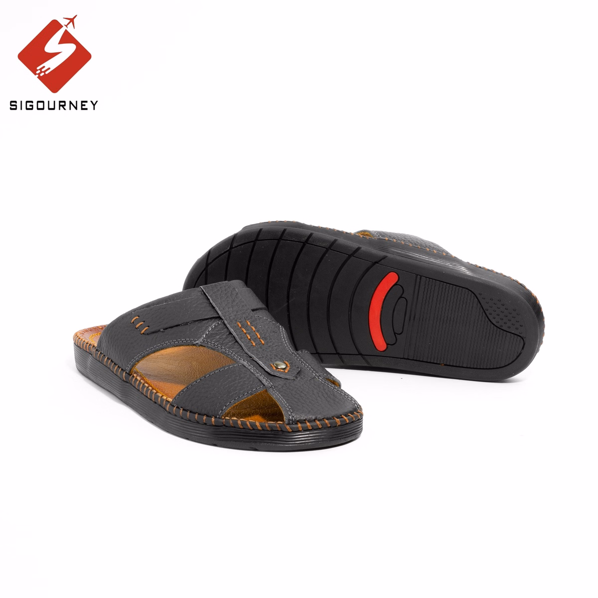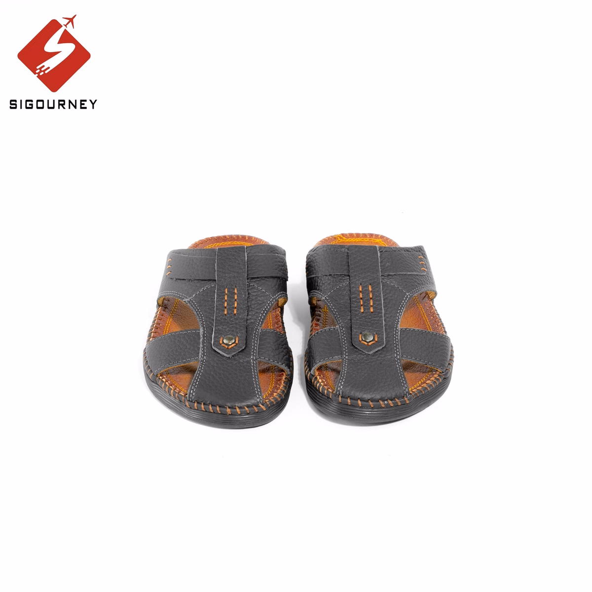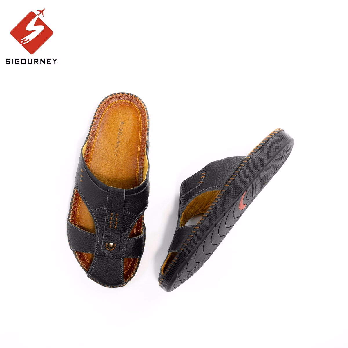 Dép Da Nam Quai Ngang Da Bò Màu Đen Có Khâu Đế Chắc Chắn Dn118 Bảo Hành 18 Tháng – Sigourney