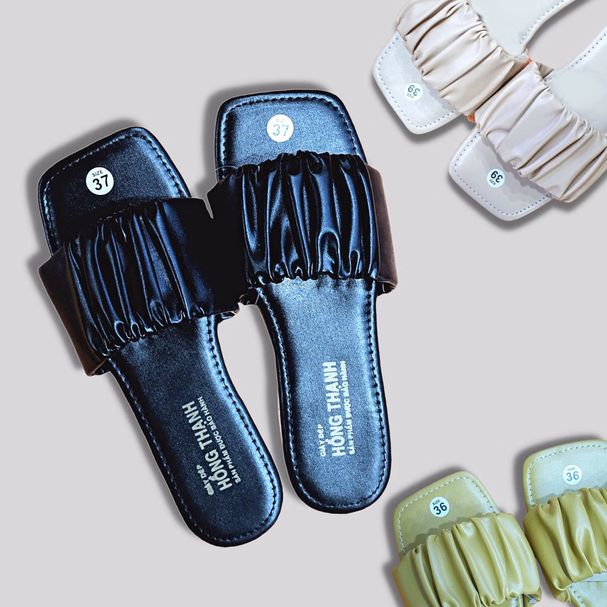 Dép Nữ Đế Bệt Quai Ngang Bản Nhúm Chần Chỉ 3 Màu Cực Xinh – Shop Mẹ Bống