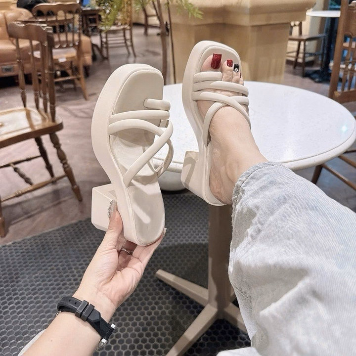 Kiểu dáng: Hở mũi tròn, gót vuông.