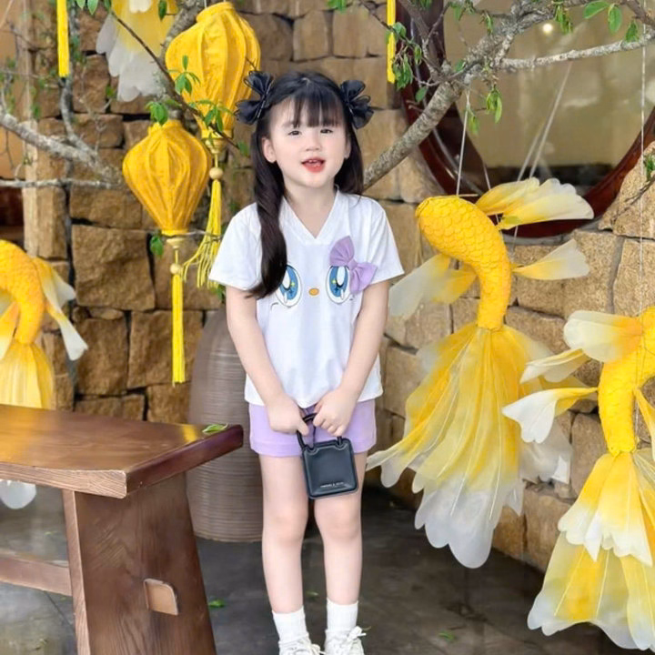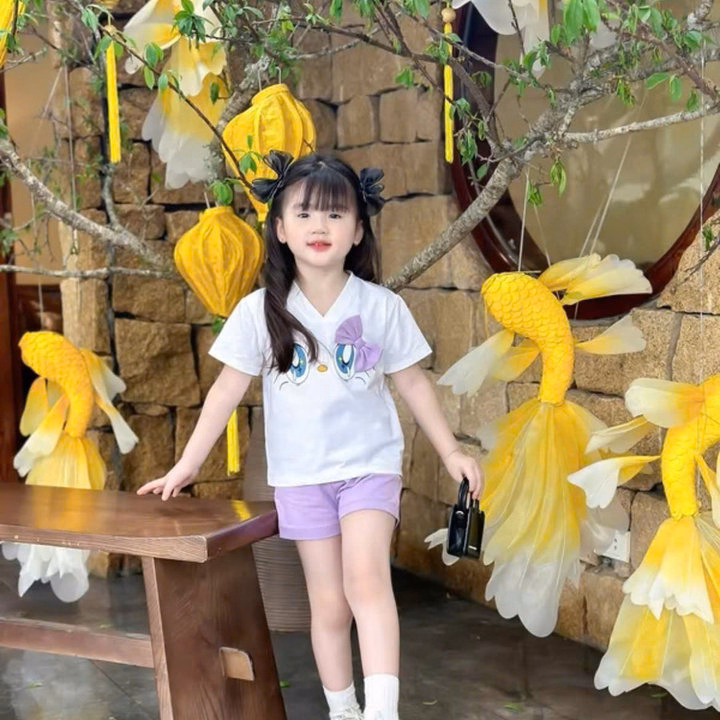 1. Tên sản phẩm : Đồ Bộ Áo Thun Có Nơ Quần Short Thoải Mái Mát Mẻ Cho Bé Gái Mùa Hè
