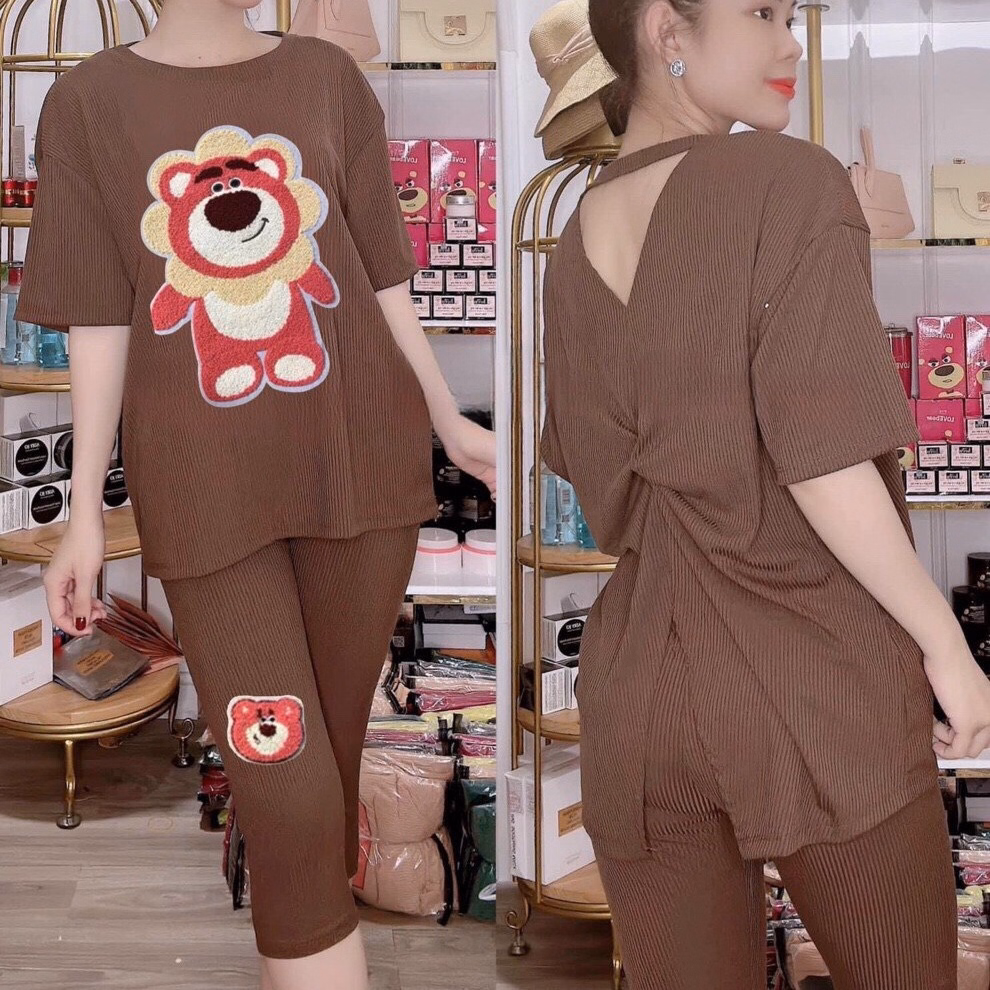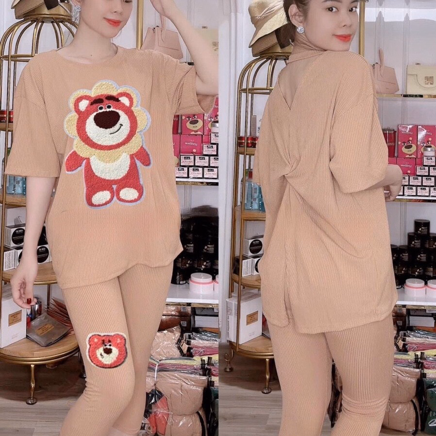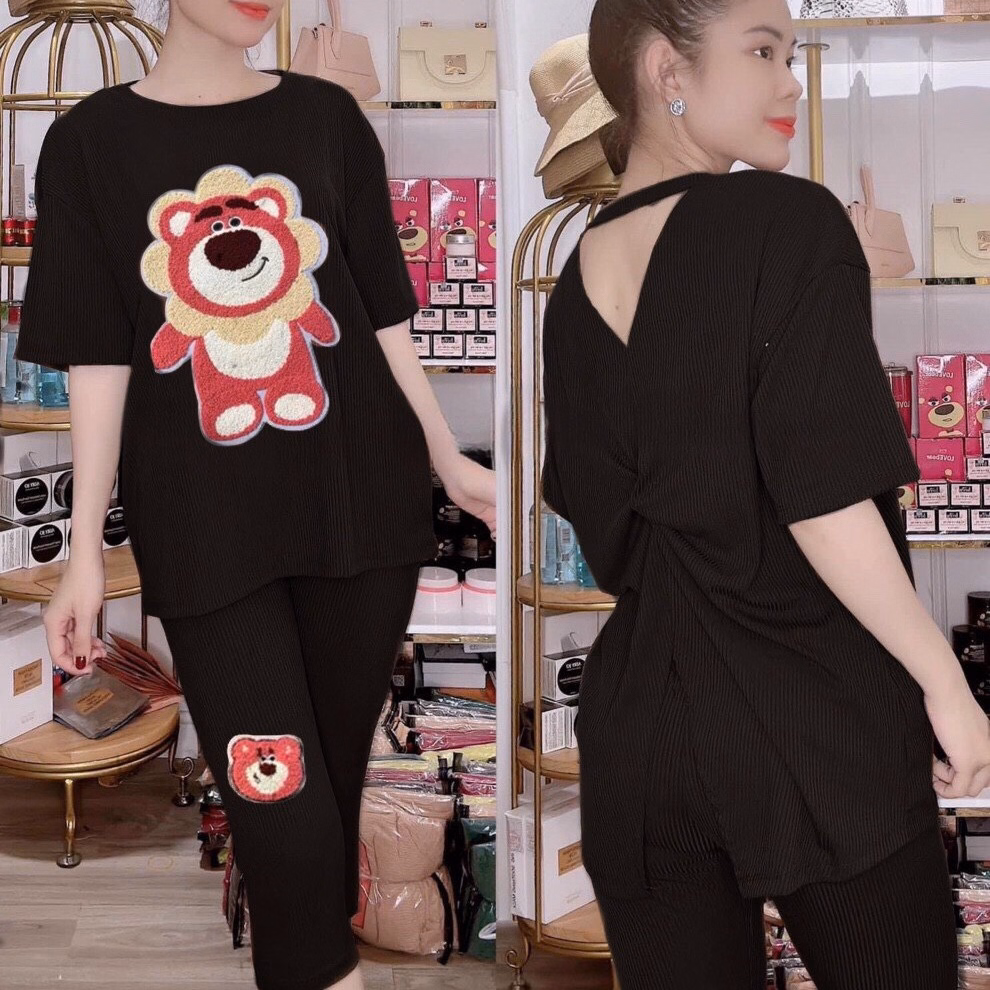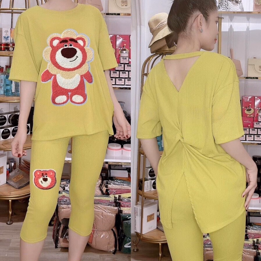Đồ Bộ Nữ Áo Tay Lỡ Quần Lửng Gấu Hồng – Ausa House