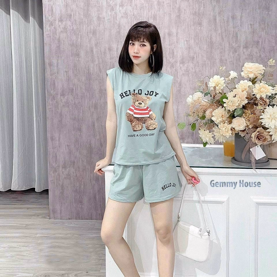 Đồ Bộ nữ Sát Nách Chất Cotton In Hình Gấu Siêu Dễ Thương Phù Hợp Mặc Nhà Đi Chơi Đều Đẹp – Htm Fashion