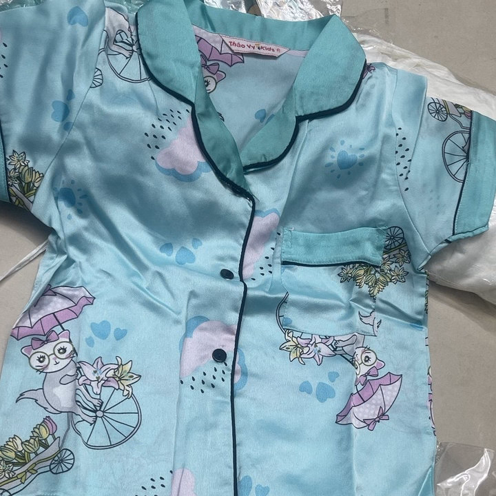 Tên sản phẩm: Đồ Bộ Trẻ Em Pijama Lụa Satin Thiết Kế Quần Đùi Size 6 (14-16kg) – Thaovy Kids