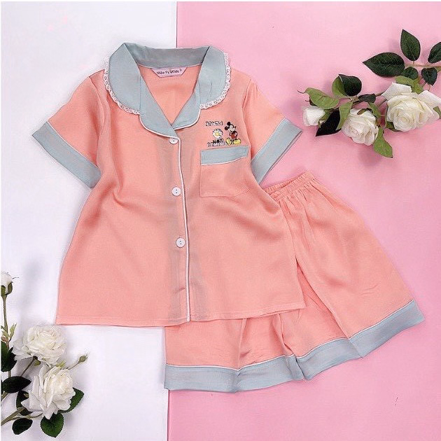 Đồ Bộ Trẻ Em Pijama Lụa Satin Thiết Kế Quần Đùi Size 6 (14-16Kg) – Thaovy Kids
