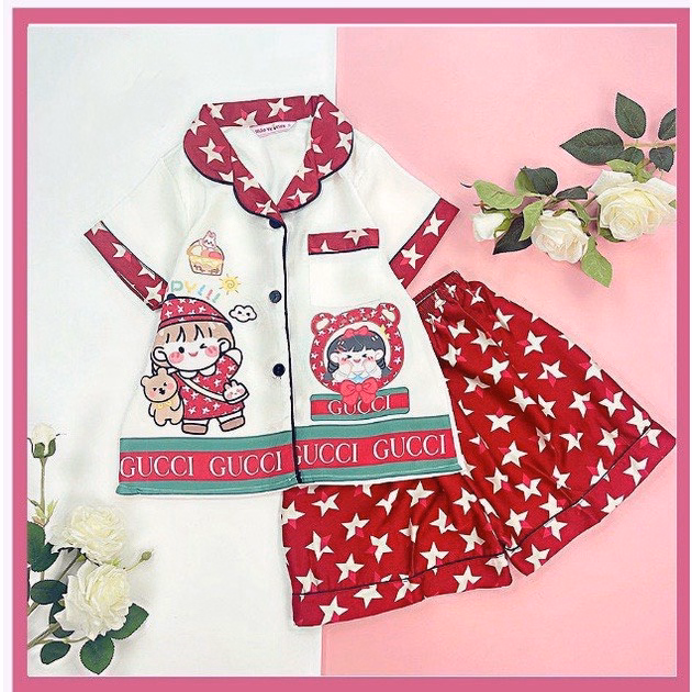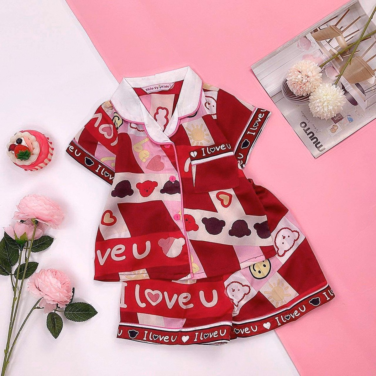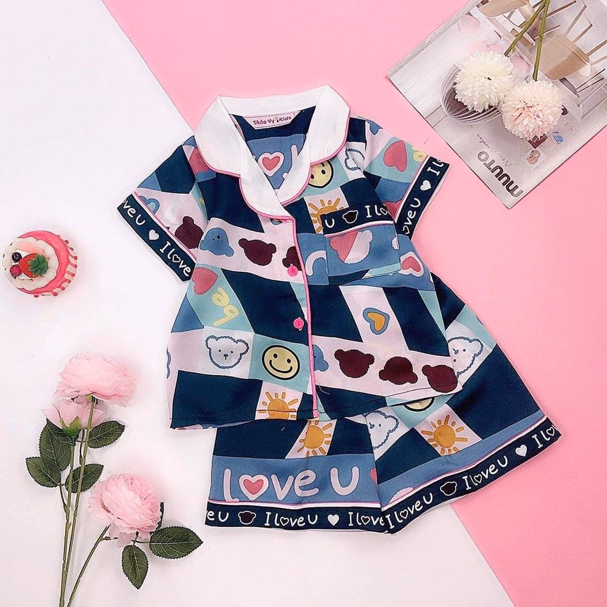 Đồ Bộ Trẻ Em Pijama Lụa Satin Thiết Kế Quần Đùi Size 9 (21-23Kg) – Thaovy Kids