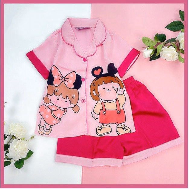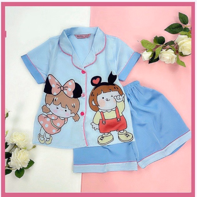 Đồ bộ trẻ em Pijama cho bé gái lụa Satin nhiều màu phù hợp cho các bé mặc ở nhà, đi chơi, sinh hoạt ngoài trời, đặt biệt thích hợp cho các bé mặc ngủ phòng máy lạnh.