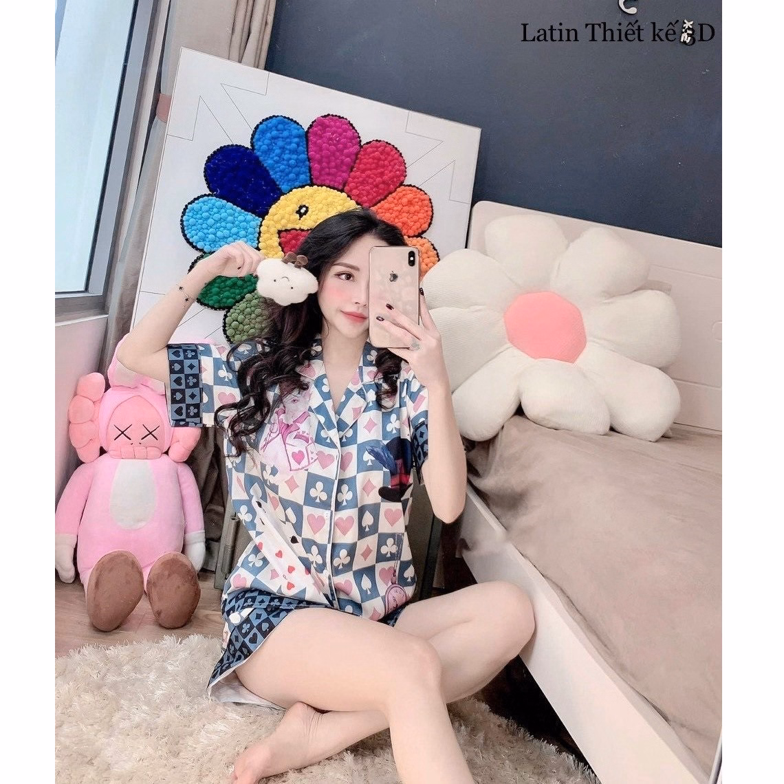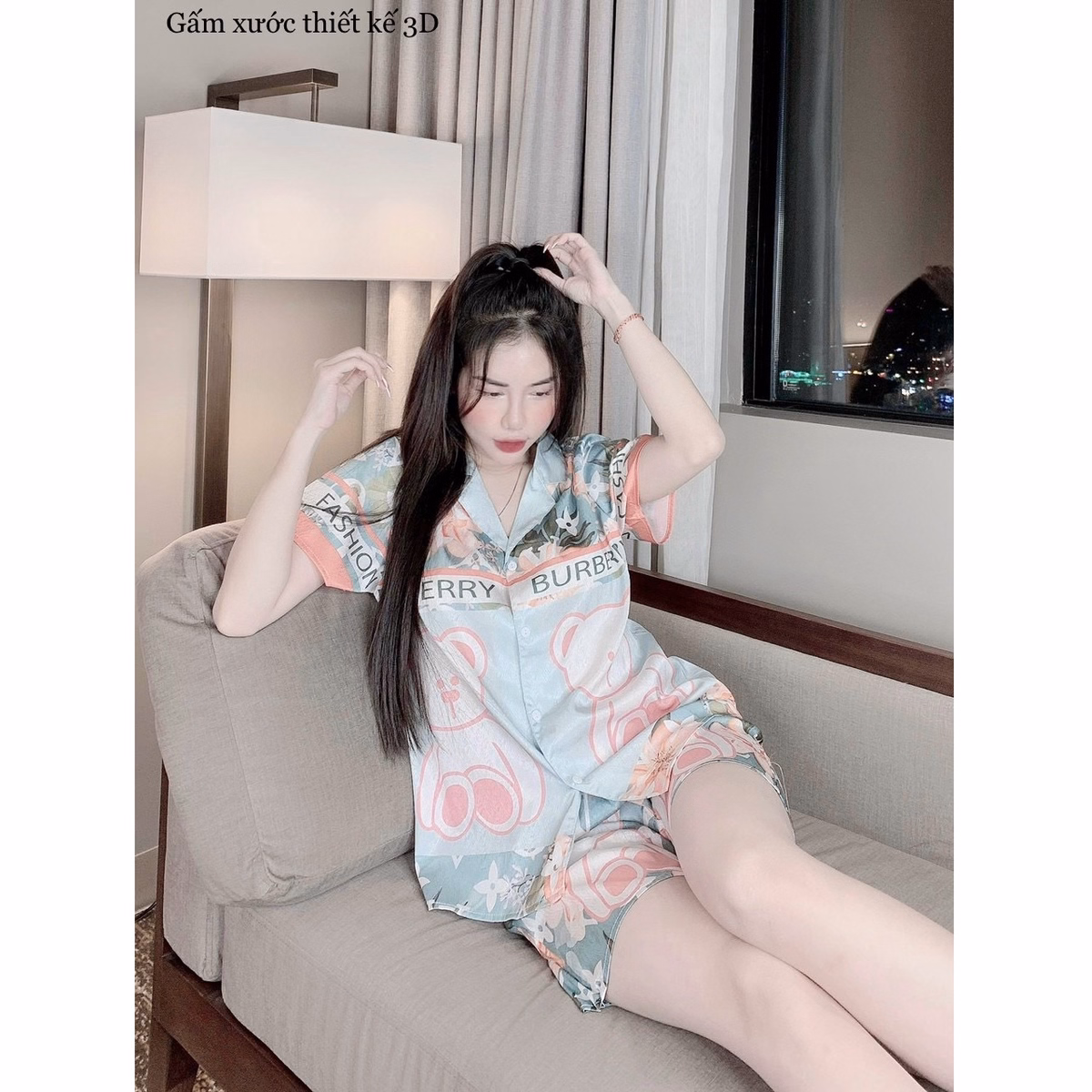 Đồ Mặc Nhà Pijama Lụa Latin Thiết Kế Quần Đùi Freesize – Sam