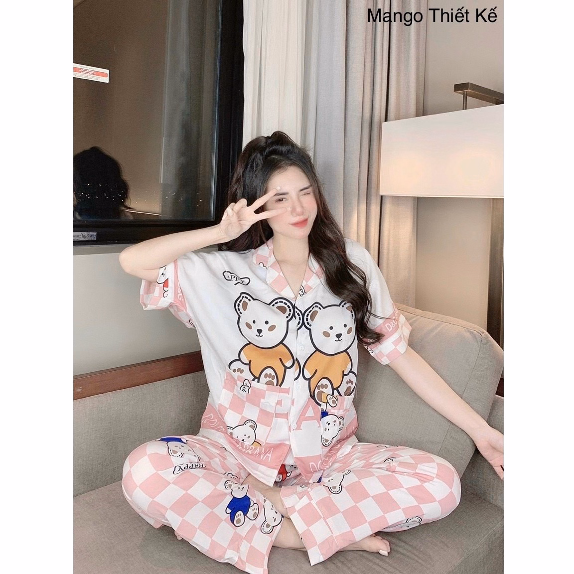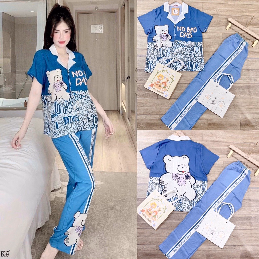 Đồ Mặc Nhà Pijama Lụa Mango Thiết Kế Tay Ngắn Quần Dài Freesize Từ 42-58Kg – Queen