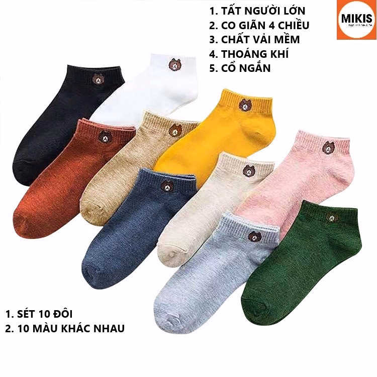 Tên sản phẩm: Combo 10 Đôi Tất Ngắn Cổ Co Giãn 4 Chiều – Mikis