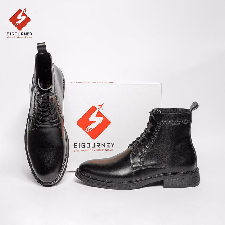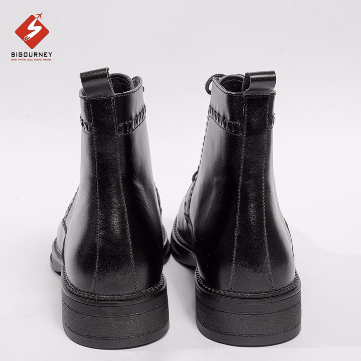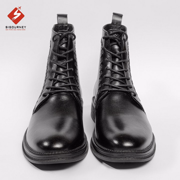 Giày Bốt Cổ Cao Da Bò Màu Đen Có Dây Buộc Boots-05 Bảo Hành 18 Tháng – Sigourney
