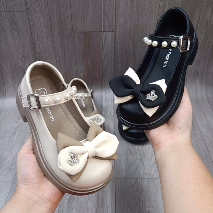 Giày Búp Bê Bé Gái Quai Ngang Đính Ngọc, Nơ Dẽ Thương( Size Từ 26-36)- Haanh