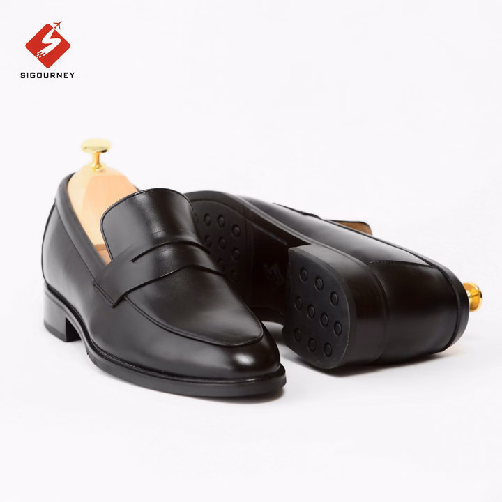 Giày Lười Nam Tăng Chiều Cao 6Cm Đế Phíp Hoàn Toàn Bí Mật Da Bò Cao Cấp Màu Đen Trơn Scc09 – Sigourney