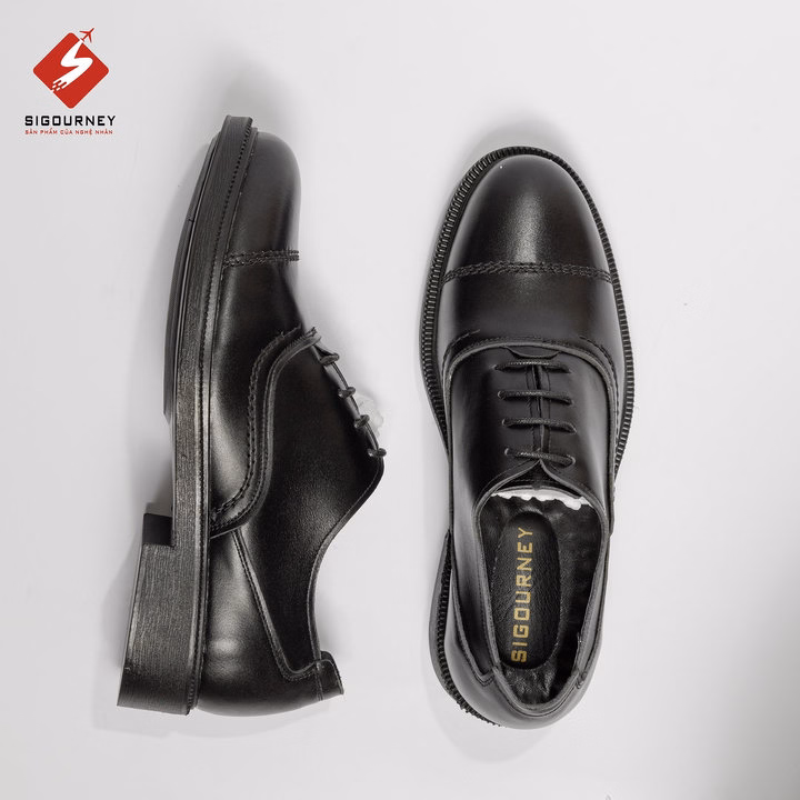 Giày Tây Nam Da Bò Nappa Dáng Oxfords Classic Màu Đen Sig-48 Bảo Hành 18 Tháng – Sigourney