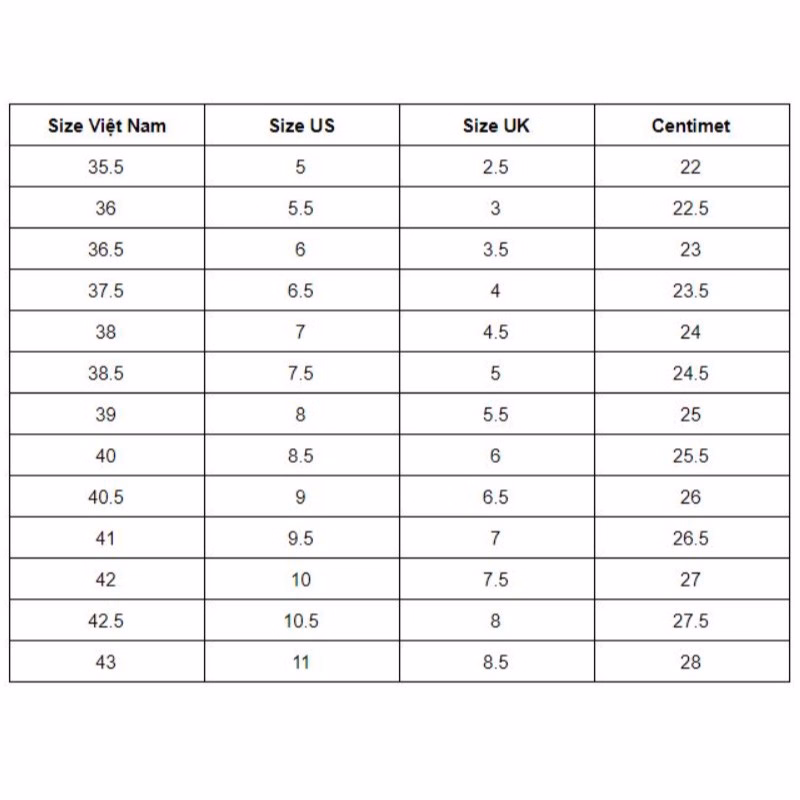 | Size giày | size 36, size 37, size 38, size 39, size 40, size 41, size 42, size 43 |