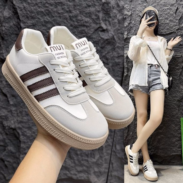 Giày Thể Thao Nữ 3 Vạch Da Cao Cấp- Haanh