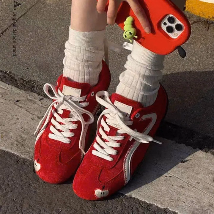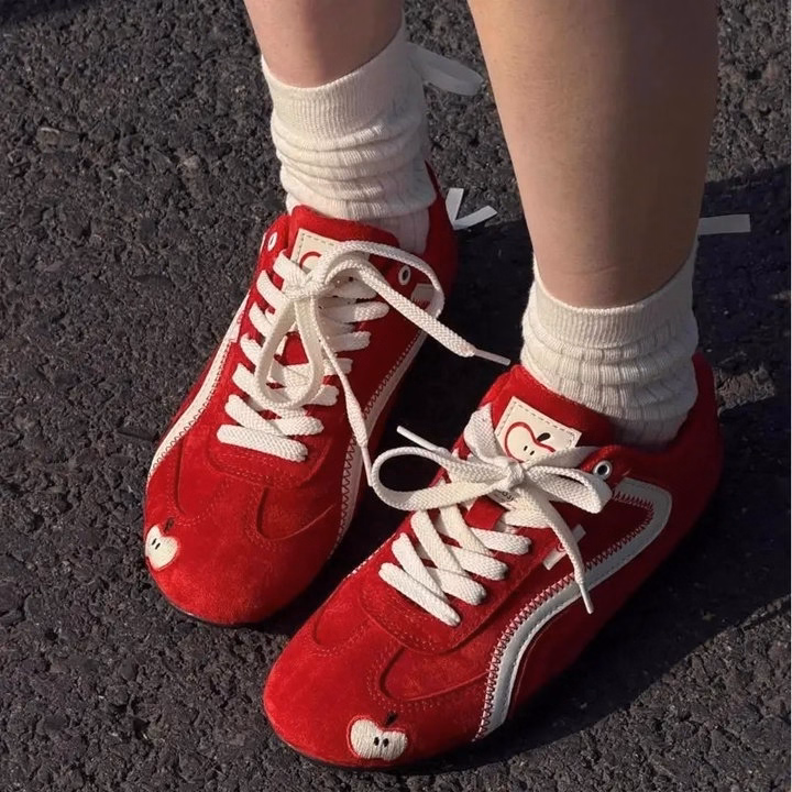 🎀 Hot Hit Cho Các Nàng – Giày Sneaker Da Lộn Thêu Họa Tiết Cực Xinh 🧵