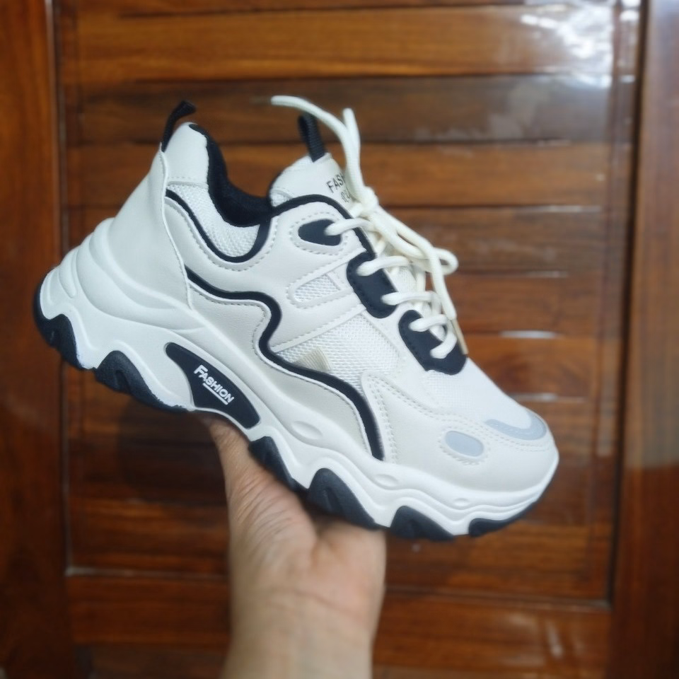 Giày Thể Thao Nữ, Nâng Đế 4 Phân, Da Phối Lưới Cao Cấp – Haanh