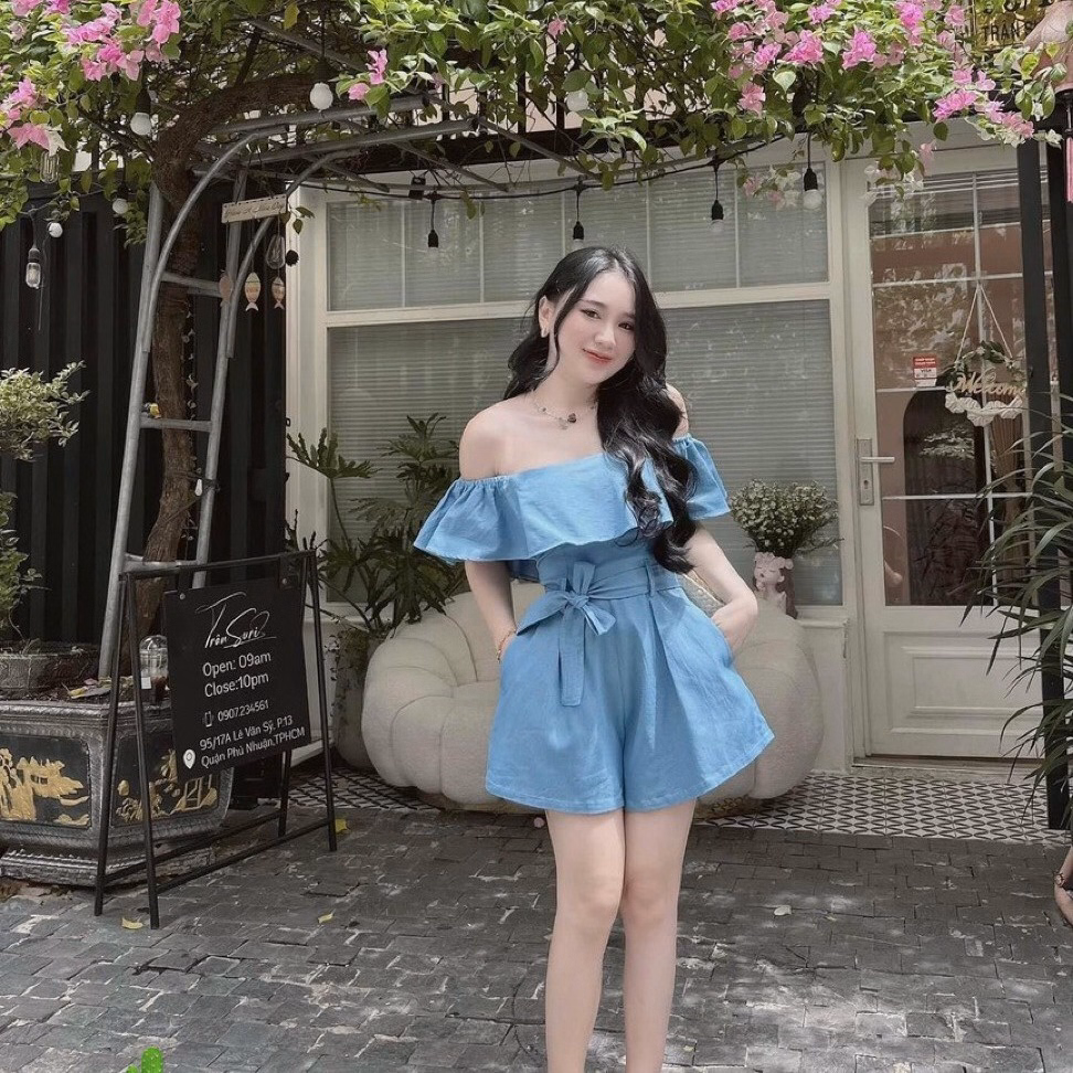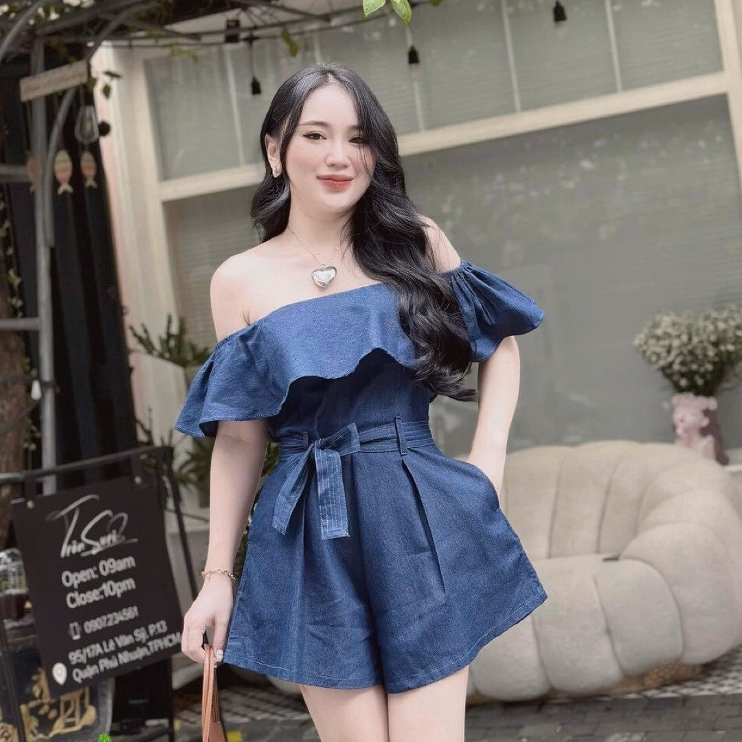 Jumpsuit Jean Bèo Thắt Nơ Ngang Eo – Ausa House