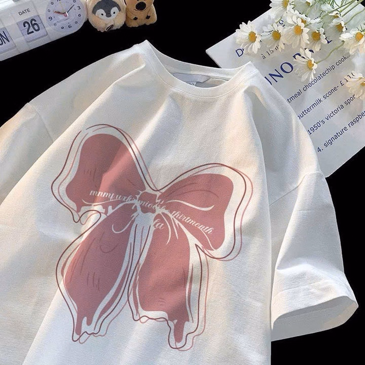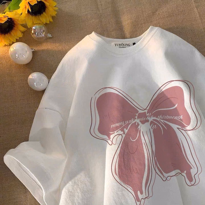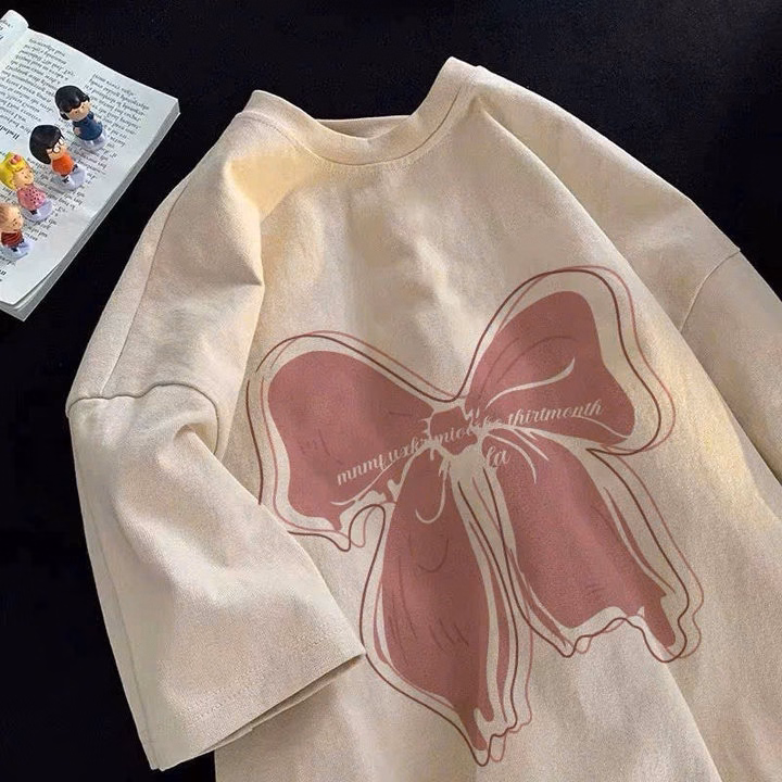 ( Lưu Ý Chất Su Mỏng Mát ) Áo Phông Form Rộng Tay Lỡ Chất Vải Cotton , Áo Cổ Tròn Nam Nữ Unisex – Hình Cô Gái Mặc Yếm