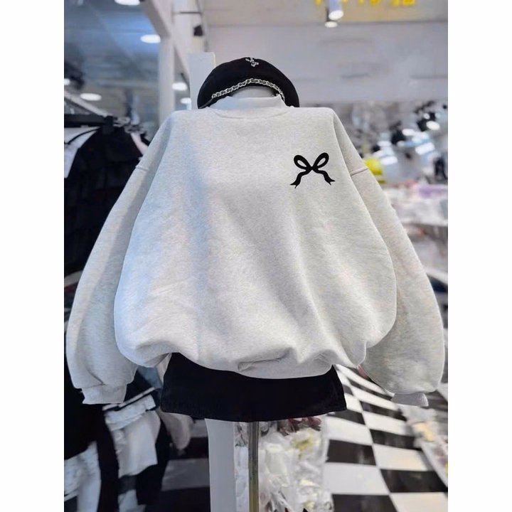 Mẫu Áo Sweater Mùa Đông Cổ Tròn Chất Nỉ Dài Tay Đẹp, Ấm Áp Cho Mùa Lạnh- Hình Nơ Đen Xinh