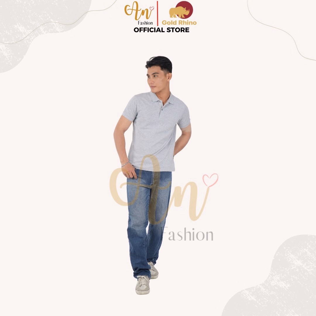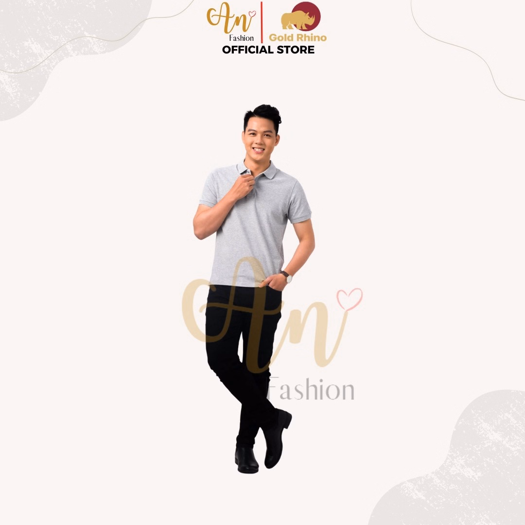 Polo Nam Màu Xám Tiêu 100% Cotton Cao Cấp Kháng Khuẩn Thoáng Mát – Gold Rhino