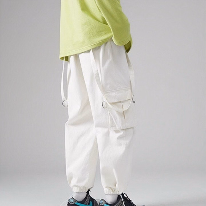 ▪️Lưng bảng to , túi hộp 2 bên có kèm dây rút gấu và 2 dây giả yếm làm điểm nhấn nổi bật cho chiếc quần , ống có thể mặc được 3 kiểu , trẻ trung đang được nhiều bạn lựa chọn để thể hiện phong cách hiện đại của mình.