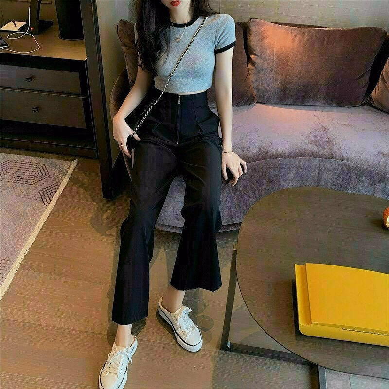 Quần Dài Nữ Ống Suông Cạp Cao Dây Kéo Zipper Ở Giữa – Ausa House