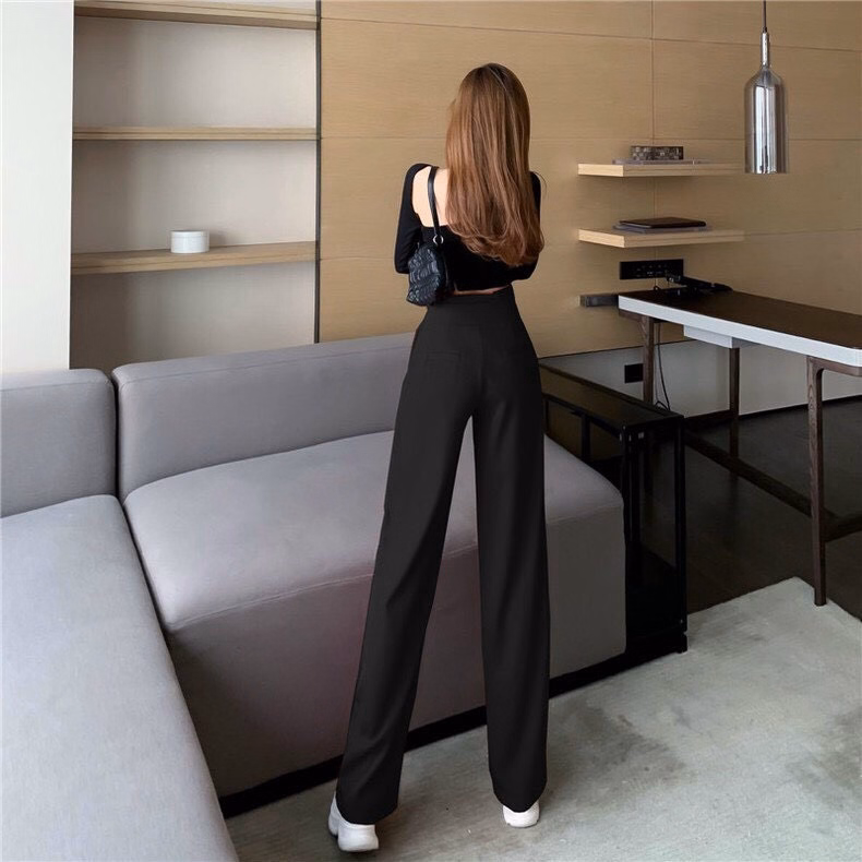 🔷Dáng quần + Kiểu dáng: Ống Suông Dáng dài cạp cao khoá giữa