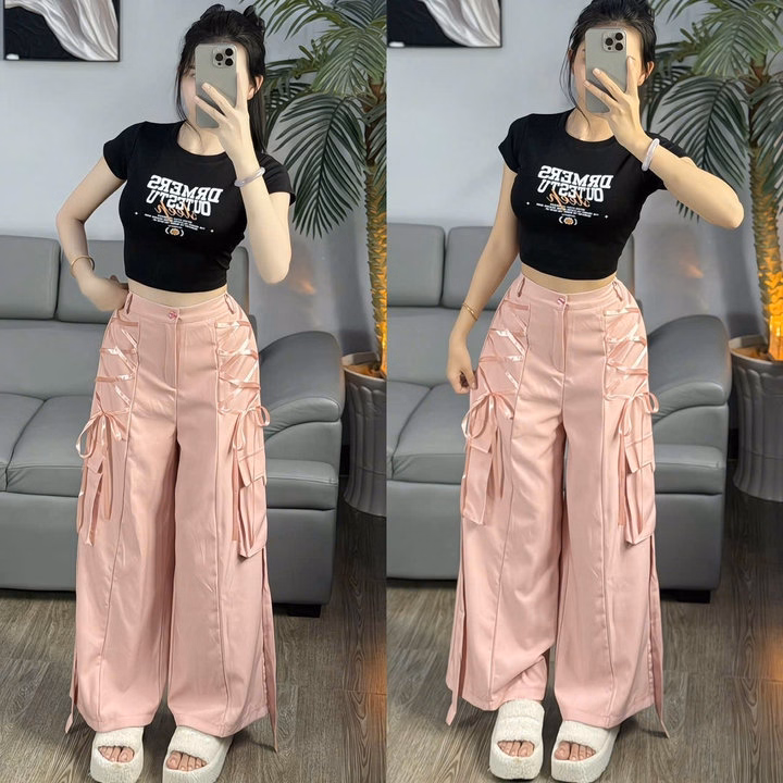 Quần Dài Ống Rộng Đính Ruy Băng Vải Tacta Mềm – Lê Phương Boutique