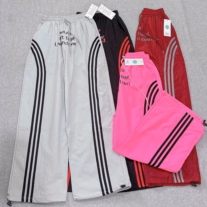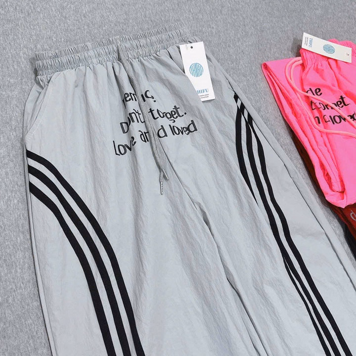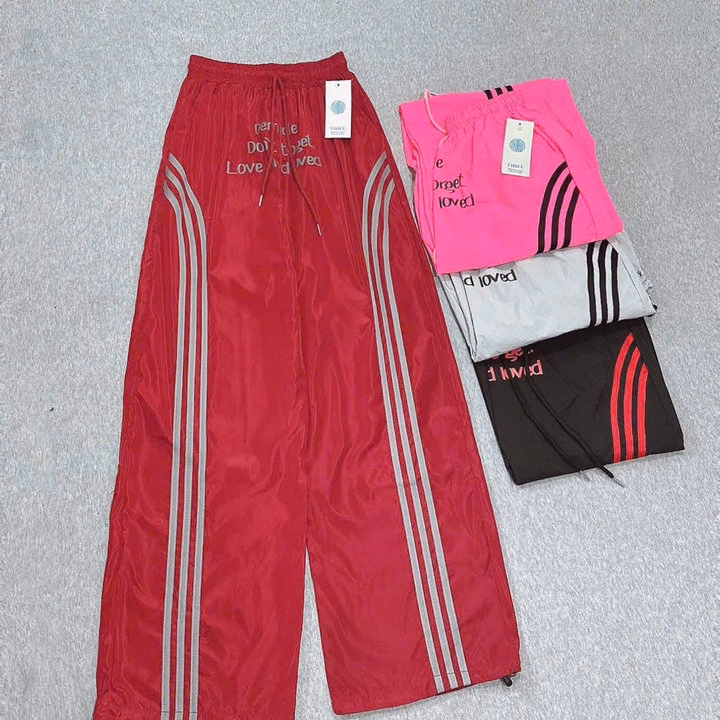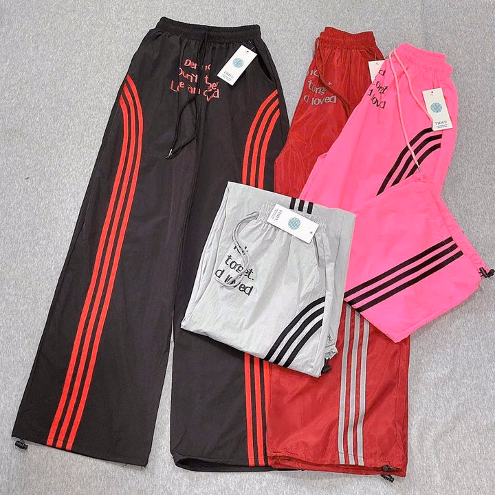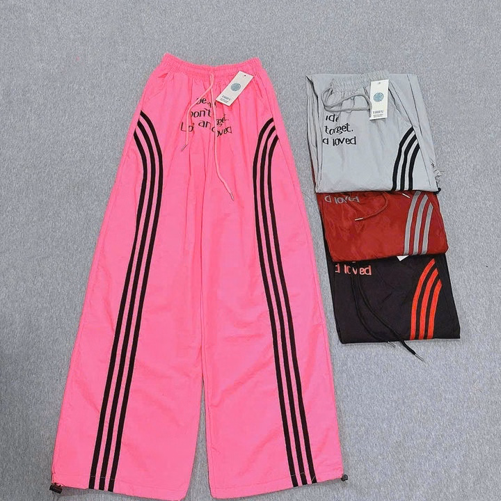 Quần Dài Ống Rộng Dù Nhăn Thể Thao Nữ , Có Dây Rút Lai , Love Phối Viền Sọc Mặc Hàng Ngày T651