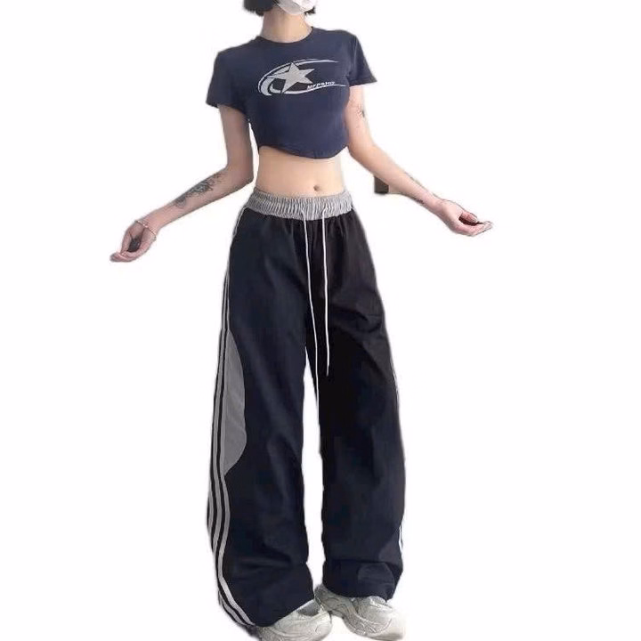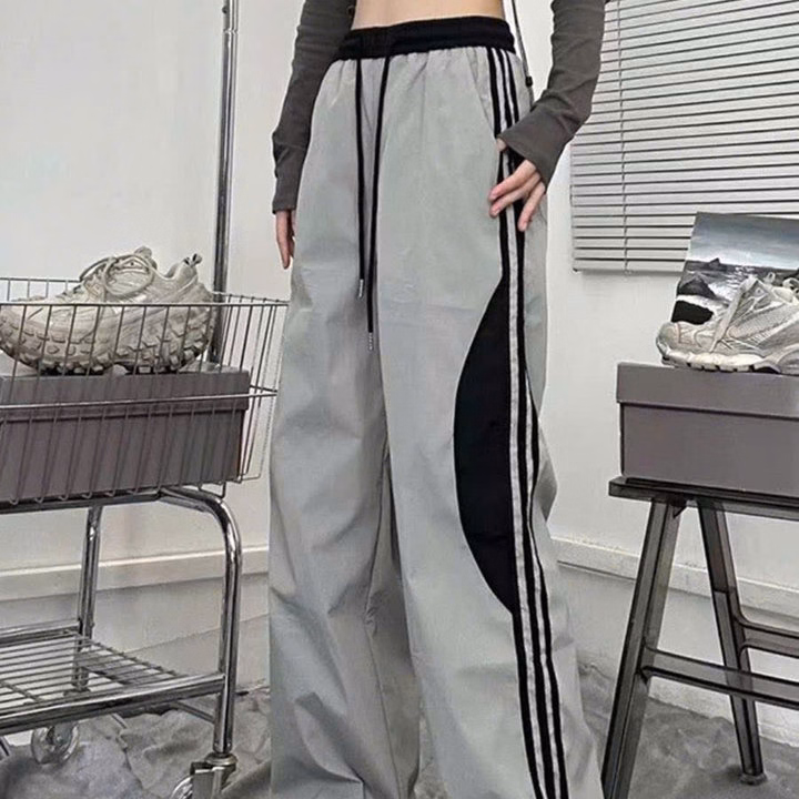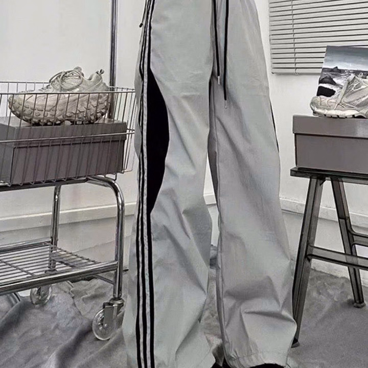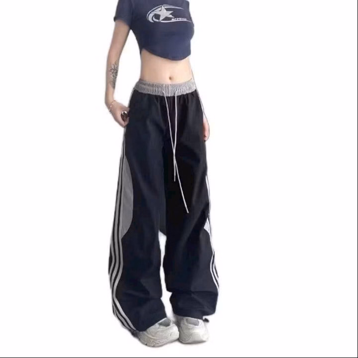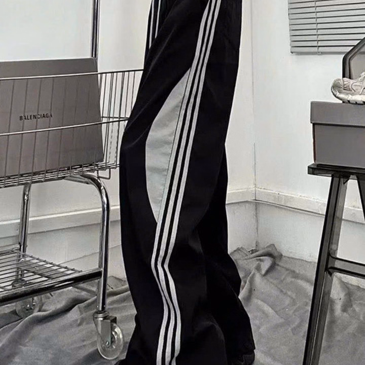 Quần Dài Ống Rộng Phối Viền Sọc Chất Dù Có Dây Rút Lai T652 Lưng Chun Unsiex Cho Nam Và Nữ