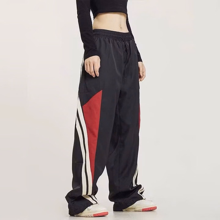 Quần Dù Phối Đỏ Hai Sọc Ống Rộng Lưng Cao Nam Nữ Unisex Gu62ew-Nana House