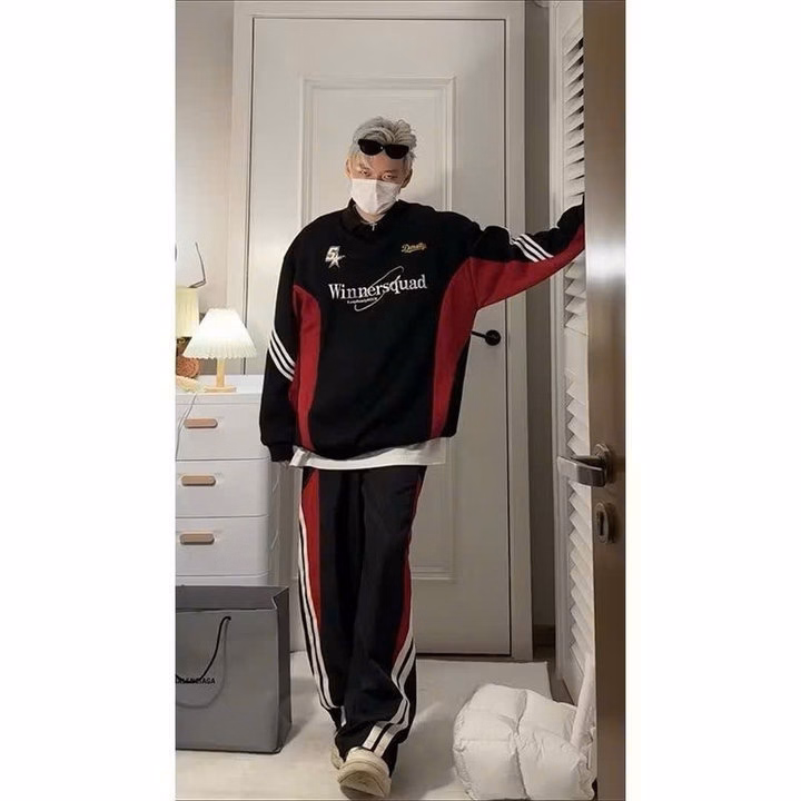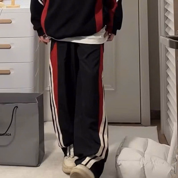 Quần Dù Phối Đỏ Hai Sọc Ống Rộng Lưng Cao Nam Nữ Unisex Ug62Ea-Sam Store
