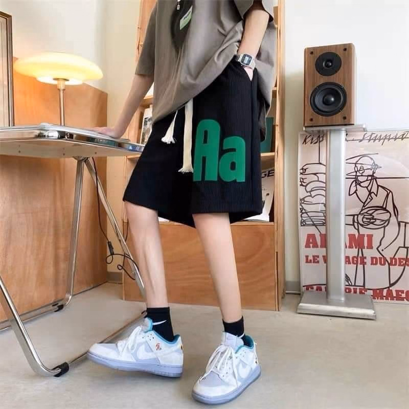 Quần Đùi Chữ Aa Nam Nữ Màu Đen