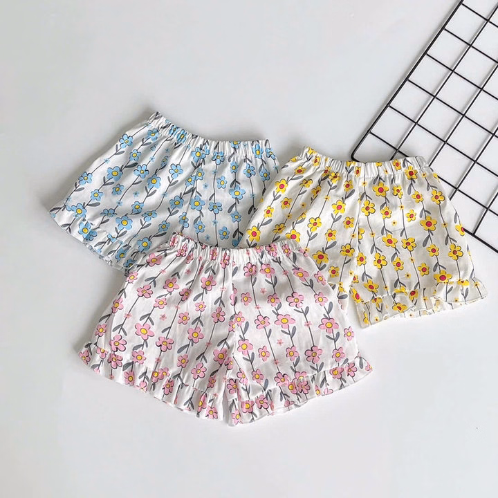 Quần Đùi Họa Tiết Hoa Viền Bèo Cho Bé Gái Sơ Sinh 1 2 3 4 Tuổi Từ 3-16kg Dành Cho Bé Gái