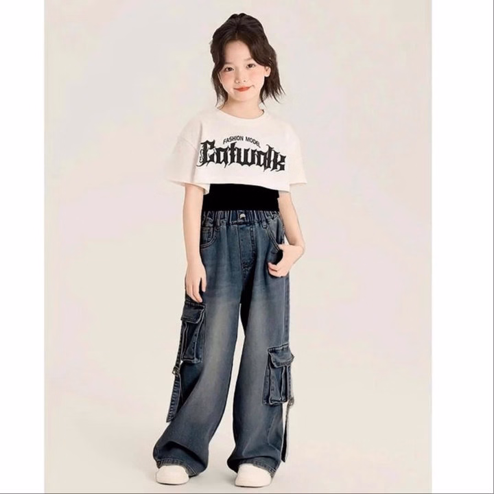 3. Chất liệu : Thiết kế thời trang với form suông dài, túi hộp hai bên cực cá tính. Chất liệu jean cotton mềm nhẹ, đã qua xử lý giặt nên không cứng, bé mặc cực thoải mái. Ống quần rộng dễ phối đồ với áo croptop, áo thun hoặc áo khoác. 2 màu dễ phối: Màu Đậm và Màu Nhạt. Phù hợp cho bé mặc đi học, đi chơi, chụp hình, đi dạo phố. Mẫu quần đang là xu hướng phong cách street style Hàn Quốc cho bé gái.