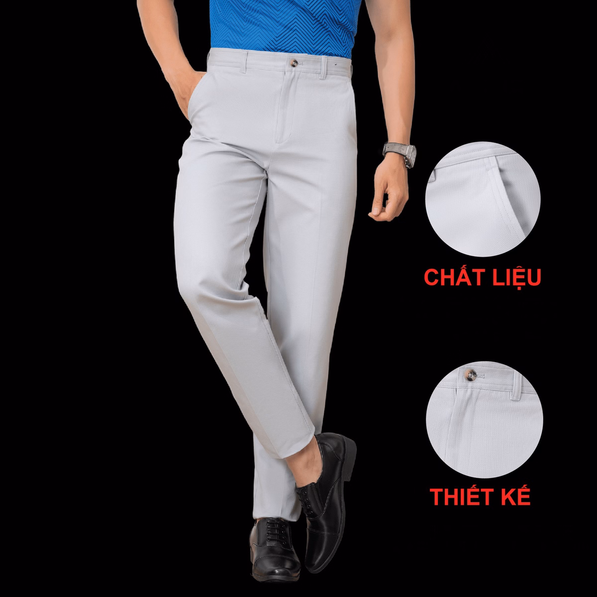 – Form Slimfit: dáng quần ôm vừa, tôn dáng người mặc, vải co dãn đem đến cảm giác mặc nhẹ thoải mái