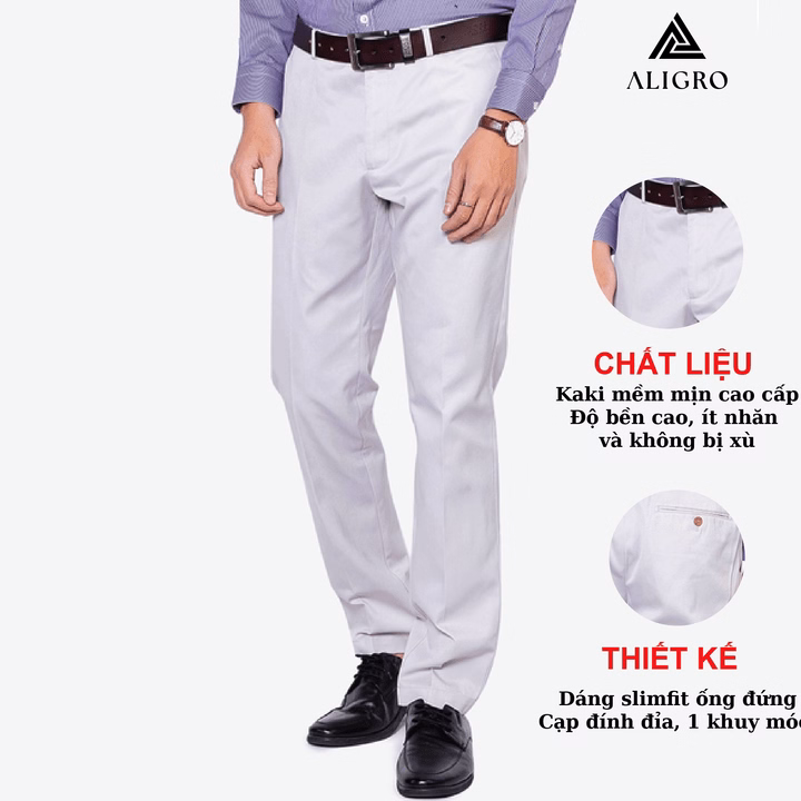 Quần Kaki Nam Aligro Chất Liệu Kaki Mềm Mịn Cao Cấp Dáng Slimfit Màu Trắng Ngà Algk023 – Aligro