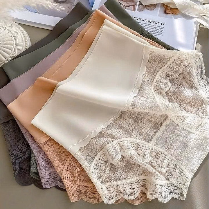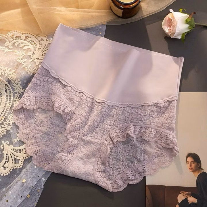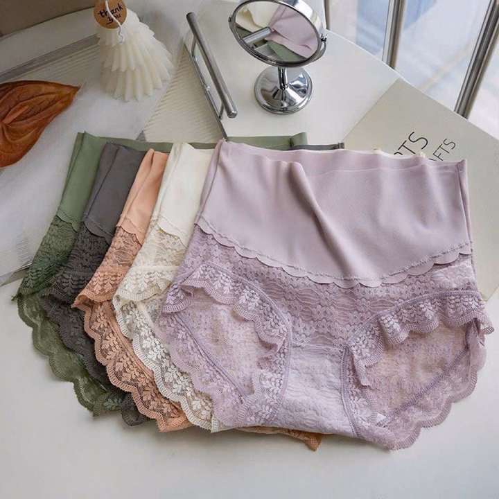 Quần Lót Nữ Cạp Cao Phối Ren Hoa Cao Cấp – Không Đường May, Chất Lụa Lạnh Mịn, Che Bụng, Tôn Dáng